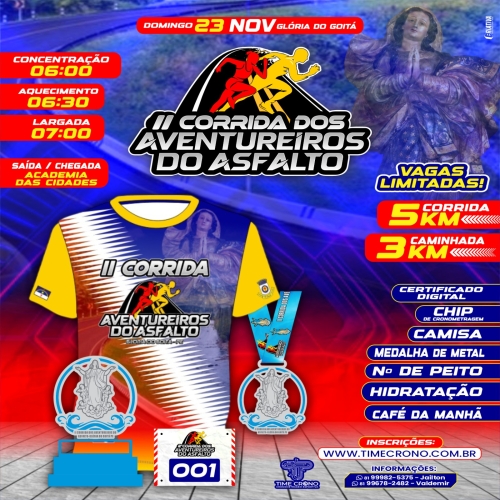 1º AO 3º lugar: TROFÉU: DE 40 A 49 ANOS.1º AO 3º lugar: TROFÉU: DE 50 A 59 ANOS.1º AO 3º lugar: TROFÉU: + 60 ANOS.EQUIPES (RANKING POR NÚMERO DE INSCRITOS) 1º lugar: TROFÉU.2º lugar: TROFÉU.3º lugar: TROFÉU.Todos os atletas que cruzarem a linha de chegada receberão medalhas de participação.